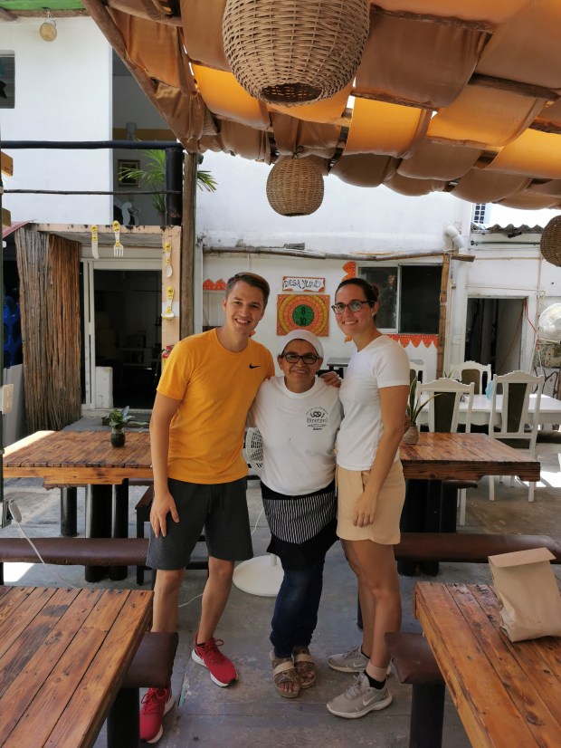 Als Erstes stand Kofferpacken auf unserer Tagesordnung. Schön langsam haben wir den Dreh raus und es klappt immer besser, dass wir unsere Taschen (ohne Kraftaufwand) schließen können. Nachdem alles gepackt war und wir aus dem Hostel ausgecheckt haben, ging es erneut zu unserem “Brezelcafé“. Wir hatten ein köstliches Frühstück und wieder eine tolle Zeit. Um 11 Uhr machten wir uns dann mit einem Collectivo auf den Weg in das Zentrum von Tulum, um zur Busstation zu gelangen. Eigentlich wollten wir mit dem Bus um 13:22 Uhr fahren, dieser war aber leider schon voll. Daher mussten wir den nächsten um 14:38 Uhr nehmen. Also hieß es warten…. Als der Bus dann endlich kam, waren wir eineinhalb Stunden unterwegs. Nach einer sehr holprigen und wackeligen Fahrt sind wir in Valladolid angekommen, aber erst am Busbahnhof noch nicht in der Unterkunft. Wir zückten Google Maps und machten uns auf den Weg zu unserem Airbnb, 15 Minuten zu Fuß. Angeblich angekommen, war unser Vermieter nicht zu sehen, wir waren schon mit ihm in Kontakt und haben bemerkt, dass wir viel zu weit gegangen sind. Also ging es für uns, vollbepackt natürlich, wieder zurück (Danke, Google…) Nach weiteren 5 Minuten sind wir dann endlich angekommen, ein wunderschönes, neues Apartment mit Küche und kleinem Garten. Wir haben unsere Sachen abgelegt, uns kurz erholt und gingen gleich wieder los zu einem Supermarkt um Essen zu kaufen. Der Supermarkt war riesig und man bekommt einfach alles dort, von Fernseher, über Essen und Trinken bis hin zu Autoreifen und Spielsachen. Eine kleine Apotheke ist auch in dem Supermarkt. Wieder zu Hause angekommen, haben wir uns Nudeln mit Tomatensoße gekocht. Nach anfänglichen Schwierigkeiten mit der Bedienung des Induktionsherds hat es dann doch ganz gut funktioniert. Das Essen war köstlich und nach einem Film ging es für uns dann ins Bett.