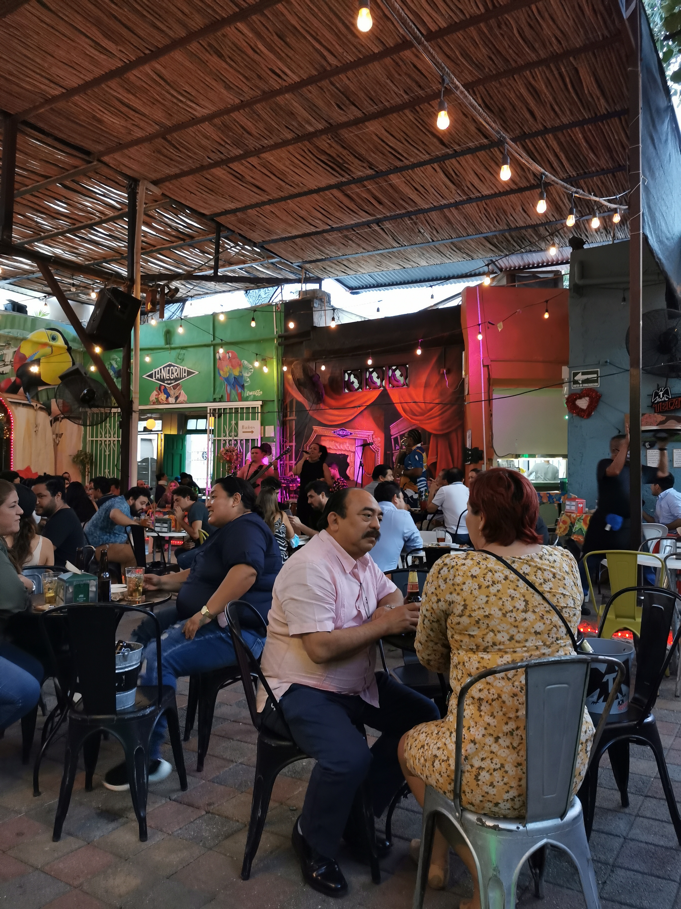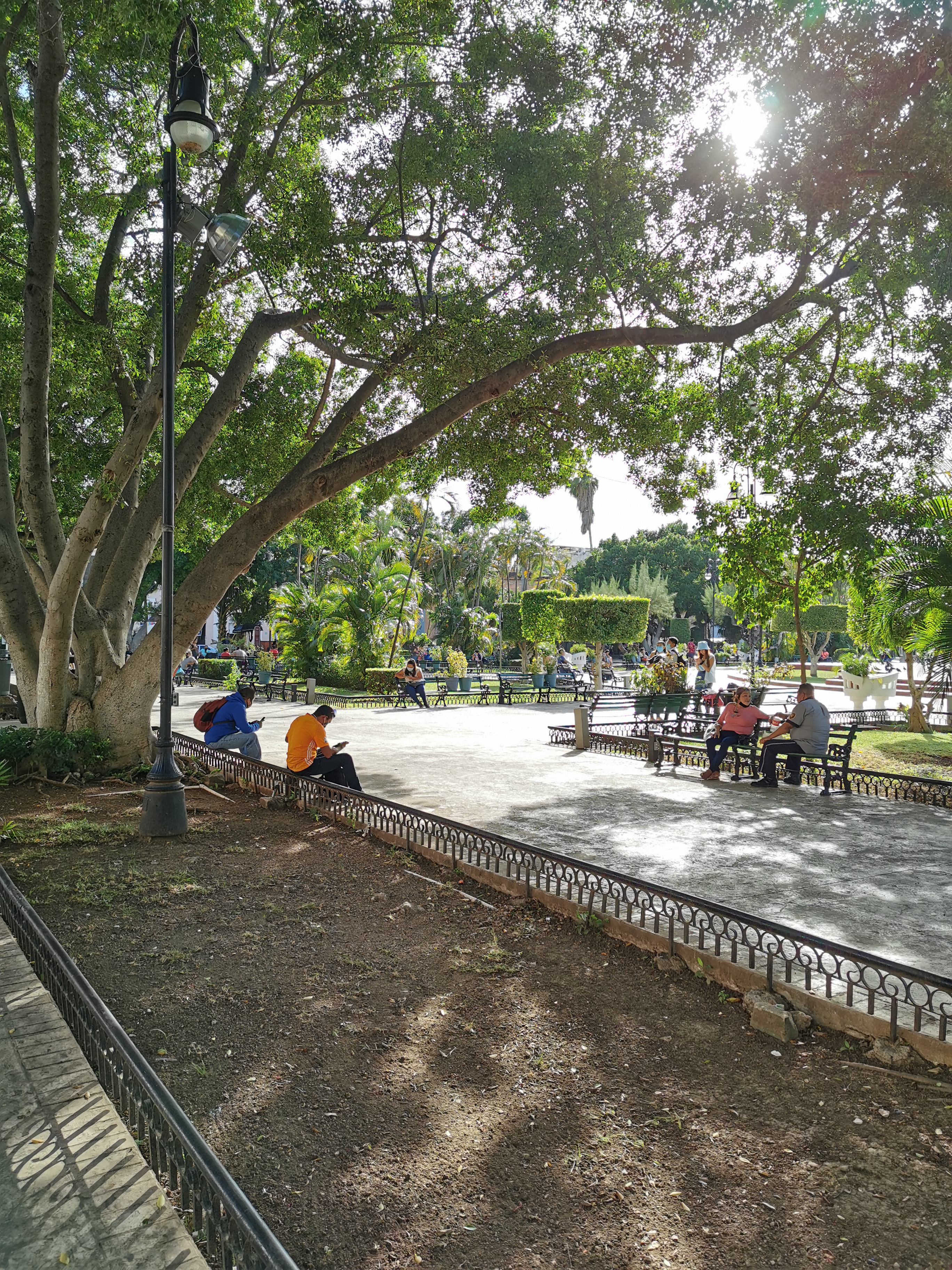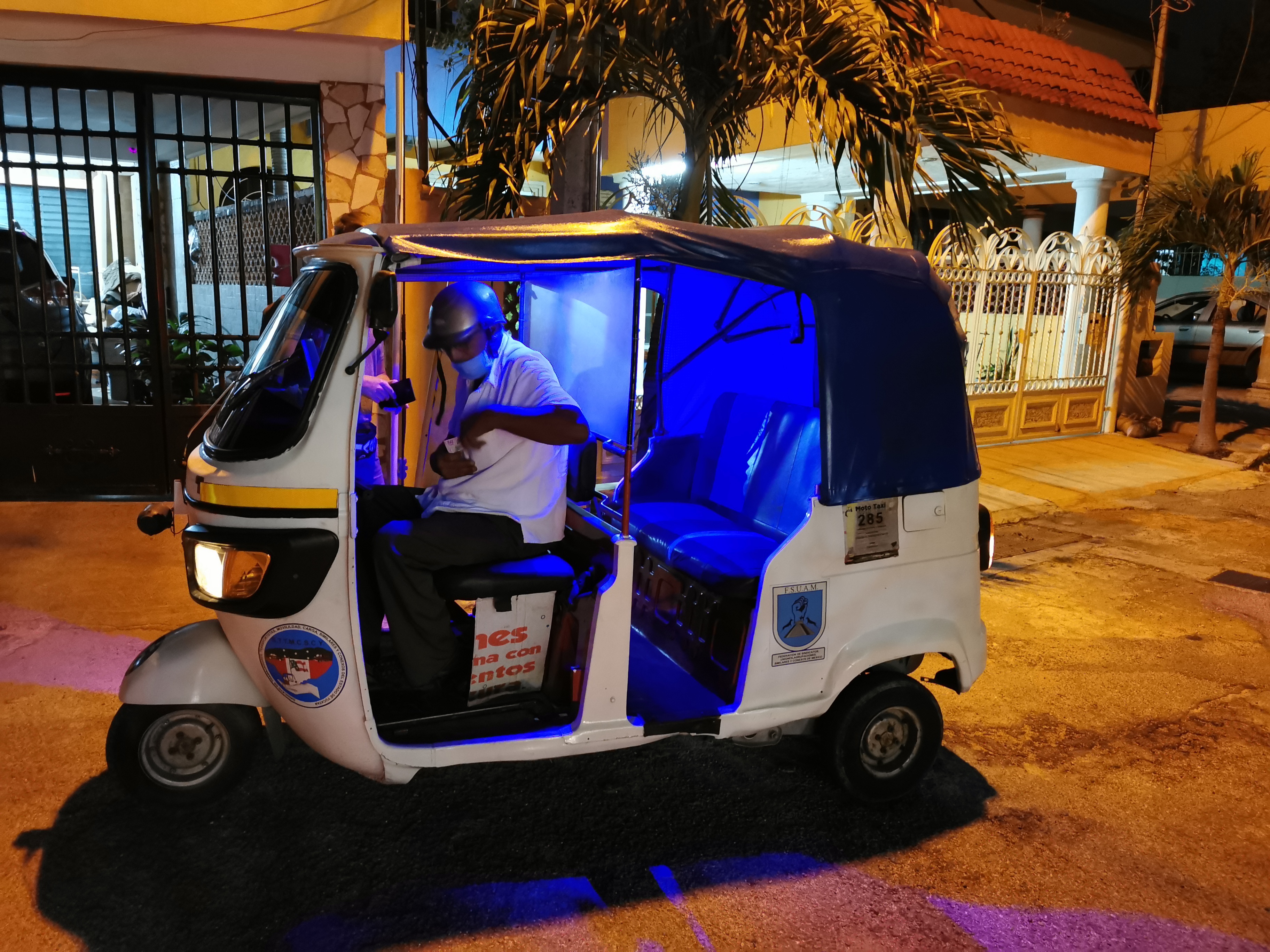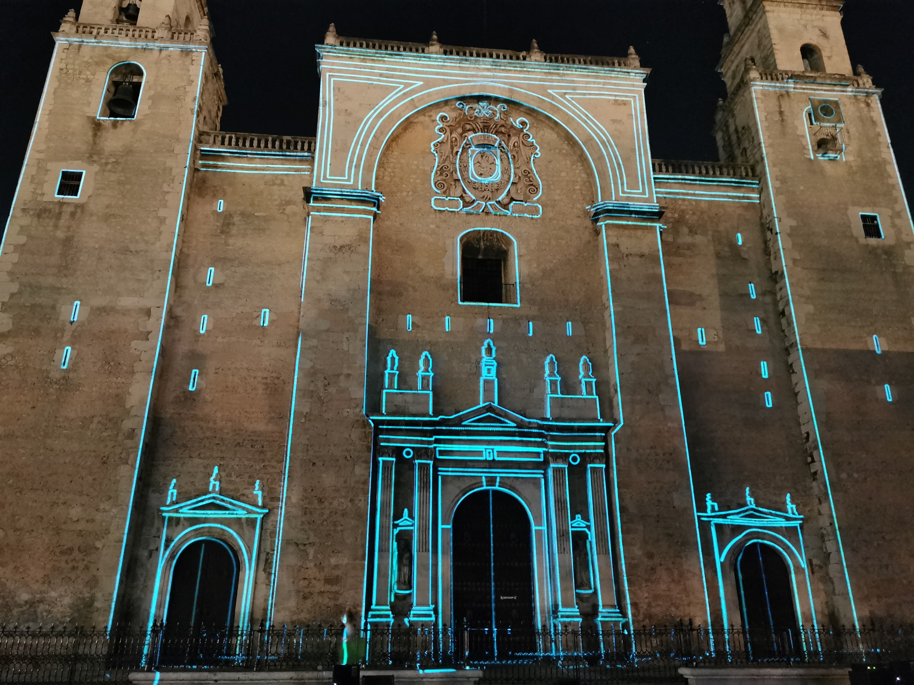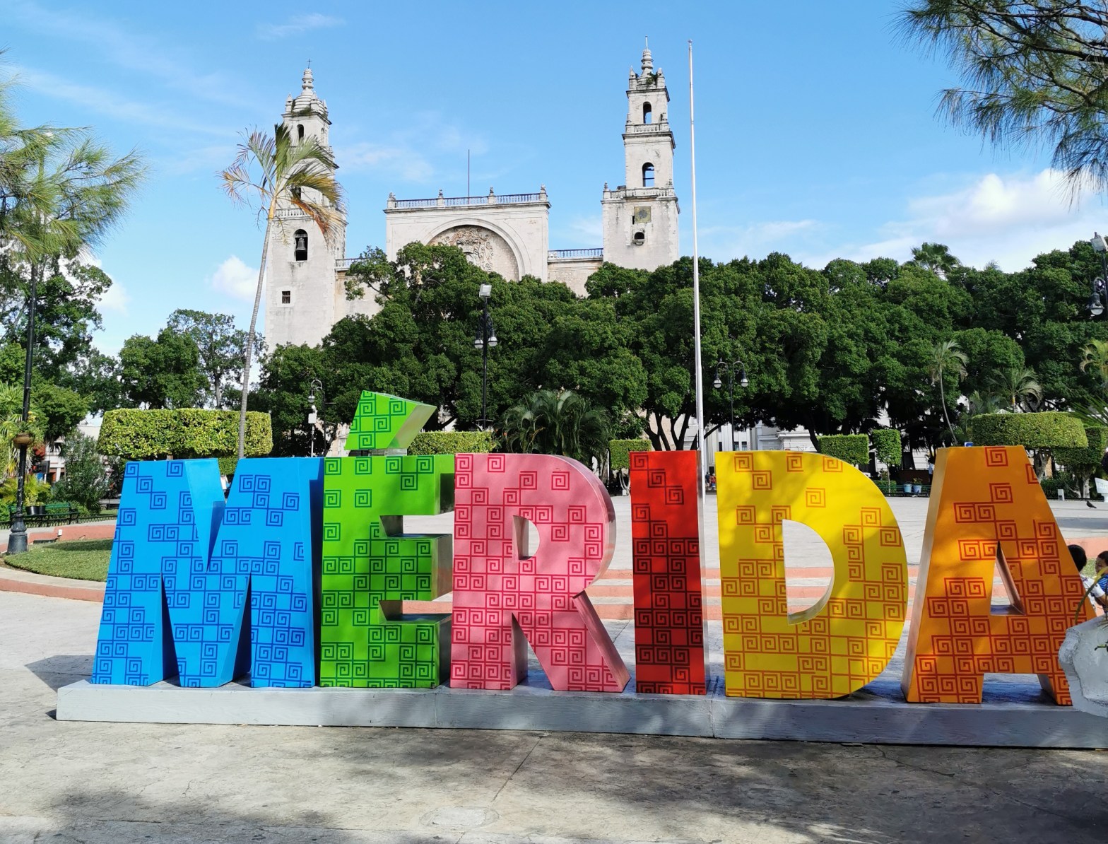 Unsere Reise ging weiter nach Mérida und wir hatten Glück, denn unser Vermieter unserer Unterkunft in Valladolid war so nett und nahm uns mit seinem Auto mit nach Mérida. Gut für uns, so sparten wir uns den Bus. 😁 Nach zweienhalb Stunden Fahrt sind wir angekommen. Die ehemalige Kolonialstadt ist eine der sichersten Städte Mexikos. Am ersten Abend gingen wir in einen riesigen Walmart, der ganz in der Nähe unserer Unterkunft war, um für Frühstück und Abendessen einkaufen. Im Supermarkt konnte man endlich wieder nach europäischer Gewohnheit einkaufen. Um zu unserer Unterkunft zurück zu kommen, nahmen wir den Fahrtendienst eines Einheimischen an. Dieser fuhr mit seiner „APE“ (siehe Bilder) als Taxi herum, um ein wenig Geld zu verdienen. Nach anfänglichen Startschwierigkeiten, das Gefährt wollte nicht anspringen, waren wir dann doch ziemlich schnell auf den holprigen Straßen unterwegs. Am nächsten Morgen ging es mit dem Bus für 8 Pesos = 0,35 € pro Person ins Stadtzentrum von Mérida. Dort haben wir einen netten Einheimischen getroffen, der uns gleich Tipps für die Stadt und das Abendprogramm gab. Auf seine Empfehlung gingen wir in den „Mercado Principal“, das ist ein berühmter Mayamarkt hier in Mérida. Auf diesem Markt werden Hängematten, Decken, Teppiche und vieles mehr aus Sisalfasern, die mit Baumwolle gemischt werden, in Handarbeit hergestellt. Wir bekamen eine ausführliche Erklärung, wie Hängematten hergestellt werden und einen kurzen Einblick in die Mayakultur. Was für uns unvorstellbar war, ist, dass Familien aus der Mayakultur kein Bett besitzen, sondern ihr Leben lang in Hängematten schlafen. In unserer Vorstellung liegt man wie eine Banane in einer Hängematte, hier allerdings sind sie so groß, dass man diagonal liegen kann. Da unser Gepäck randvoll ist, mussten wir den Markt leider mit leeren Händen verlassen. Anschließend schlenderten wir durch die Straßen und bewunderten die Architektur. Am Abend wurde auf der Fassade der Kathedrale eine Lichtshow gezeigt. Es war sehr beeindruckend anzusehen und danach gingen wir in eine Bar mit Livemusik und ließen den Abend gemütlich mit einem Cocktail ausklingen.