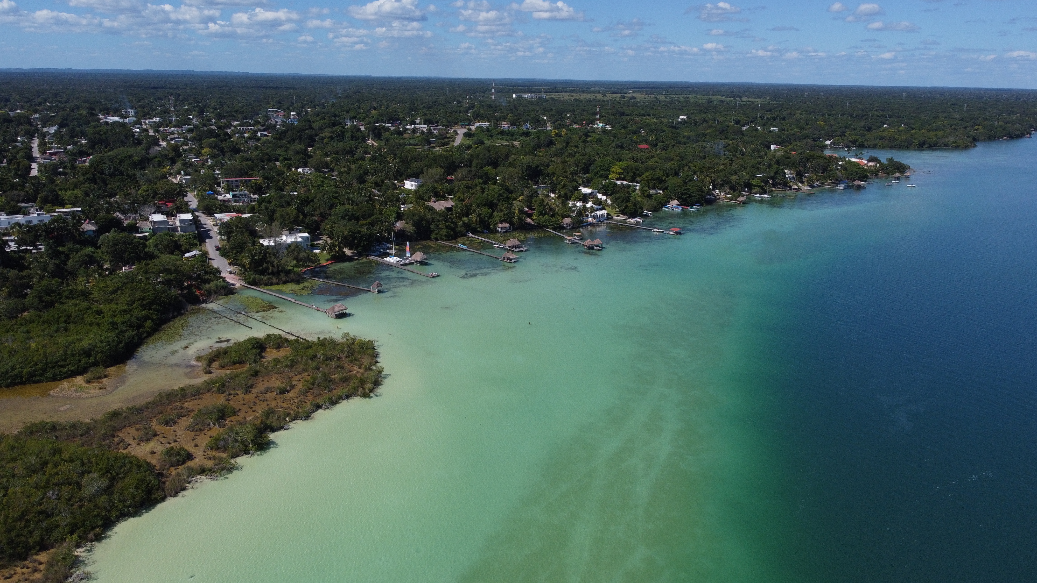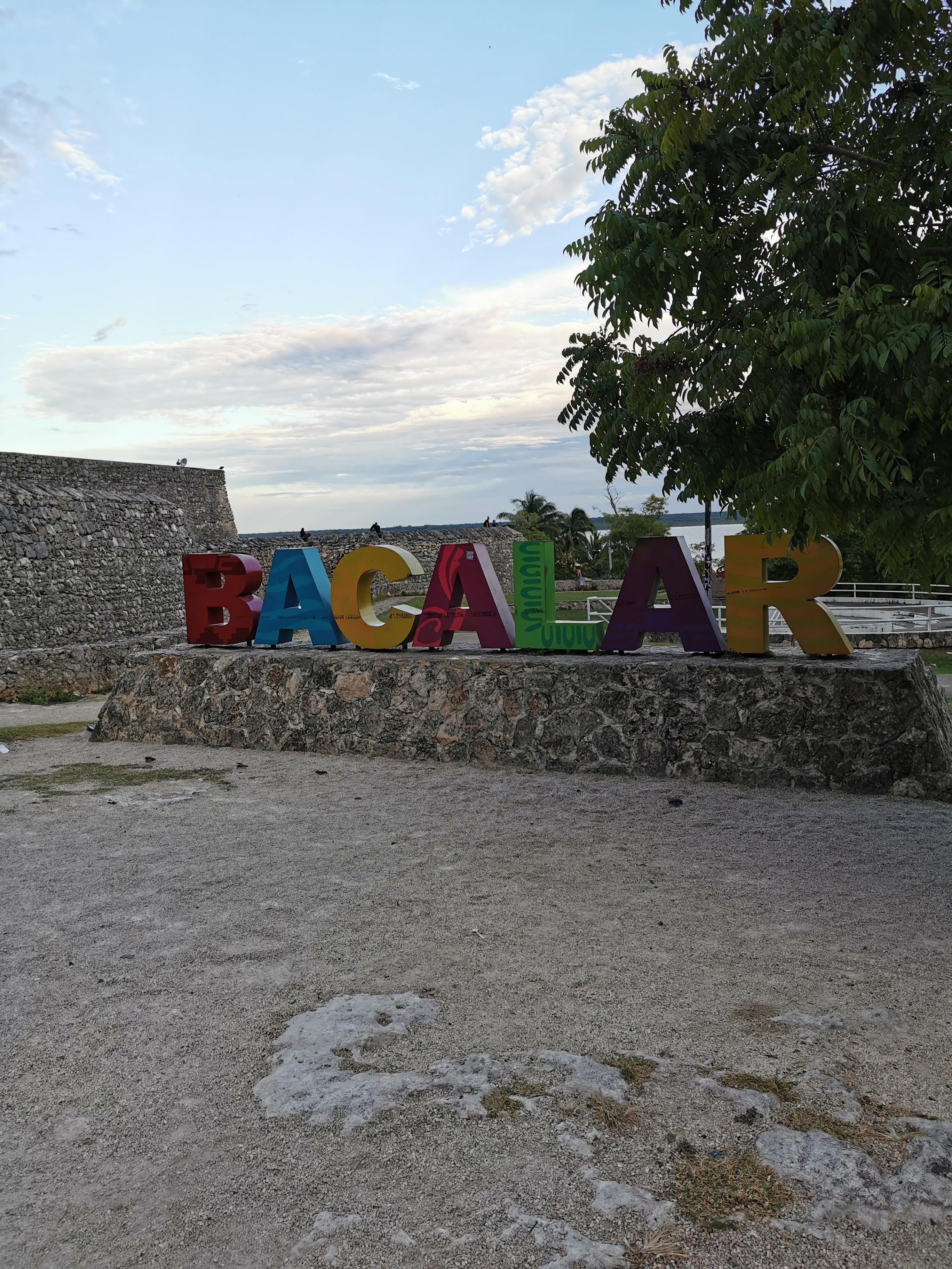 Das nächste Ziel auf unserer Reise war Bacalar – ein kleines, am See gelegenes Örtchen. Von Mérida nahmen wir erneut den Bus und nach knapp 5 Stunden erblickten wir den traumhaften See. (Die Busfahrt kostete 578 Pesos = 24,70 € pro Person und es war der komfortabelste Bus, mit dem wir je gefahren sind.) Der See erstrahlt in verschiedensten Blautönen, deshalb wird Bacalar auch als „Lagune der sieben Farben“ genannt. Die Stadt bietet viele Restaurants, Bars und kleine Shops, leider ist hier gerade (Stand November 2021) eine Baustelle, daher kann man die Parkanlage im Zentrum nicht betreten. Am Ufer des Sees gibt es eine kleine Burgruine mit dem Blick auf den gegenüberliegenden „Piratenkanal“, die Lagune ist über diesen Kanal mit dem Meer verbunden. Die Burg wurde damals errichtet, um die Stadt vor Piraten zu schützen.