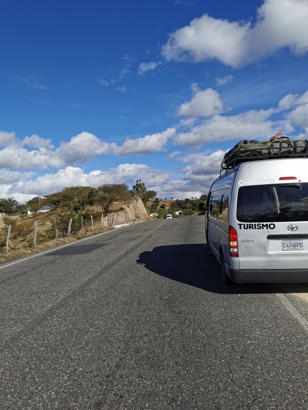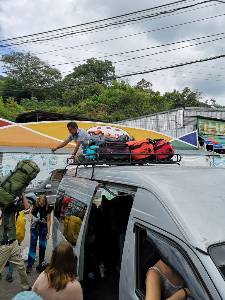 Mit einem gebuchten Shuttle (1100 Pesos = 45 € pro Person) ging es für uns in einer 12-stündigen Fahrt von San Cristóbal nach Guatemala.