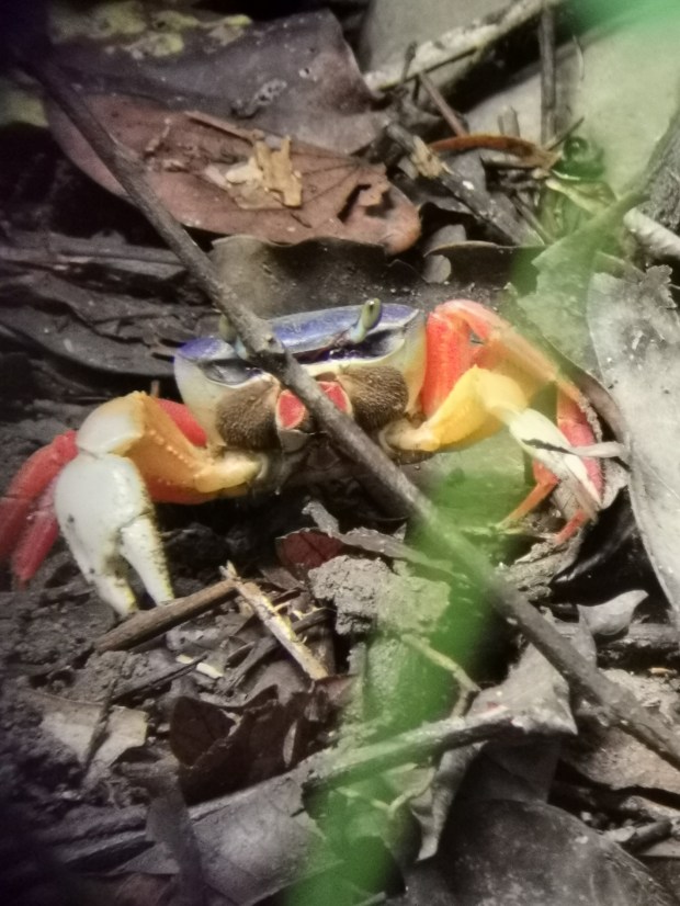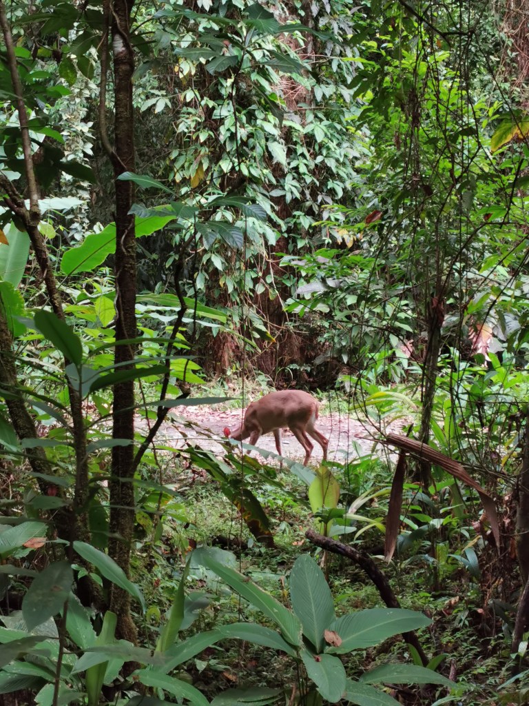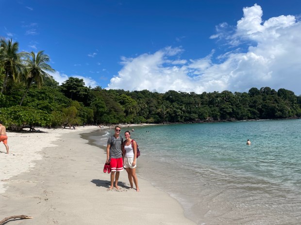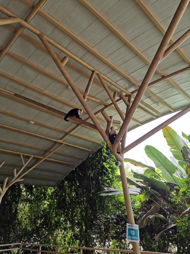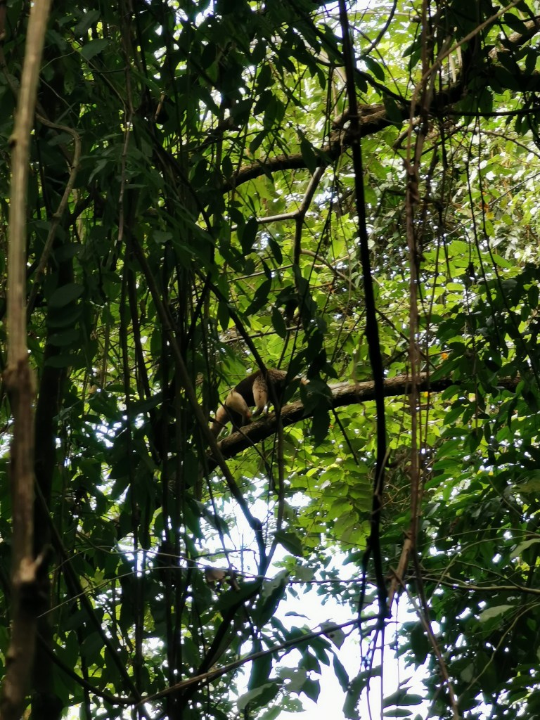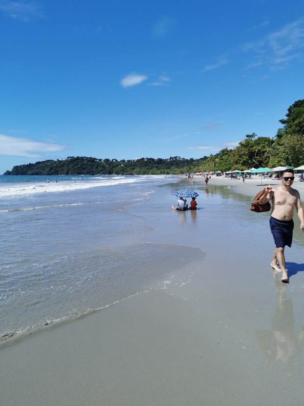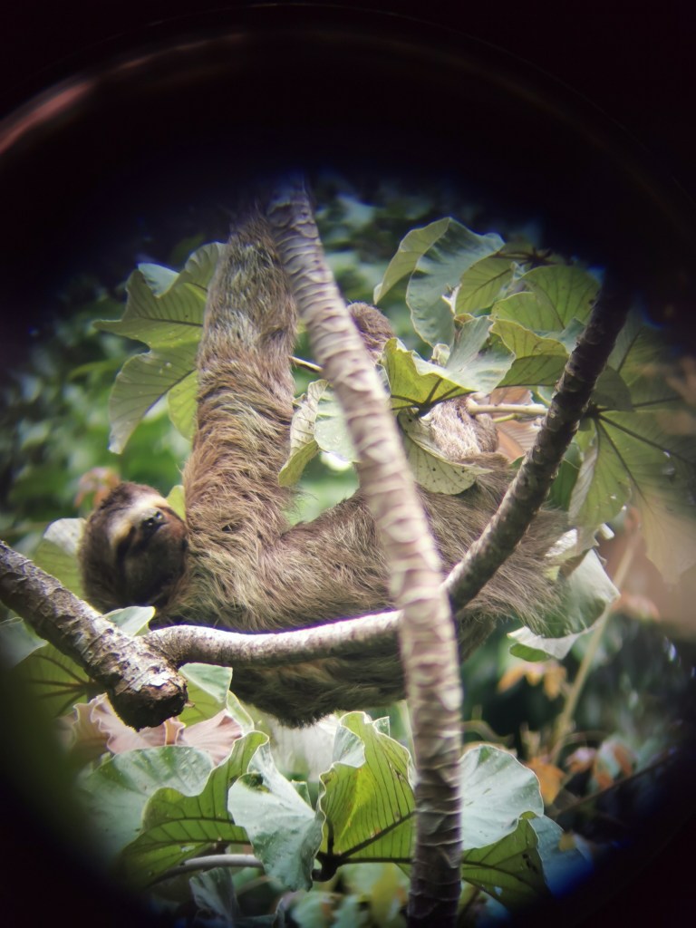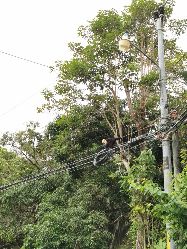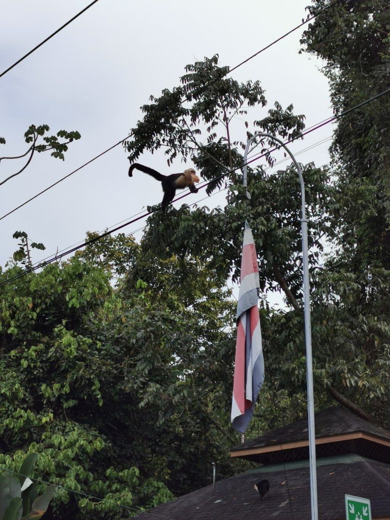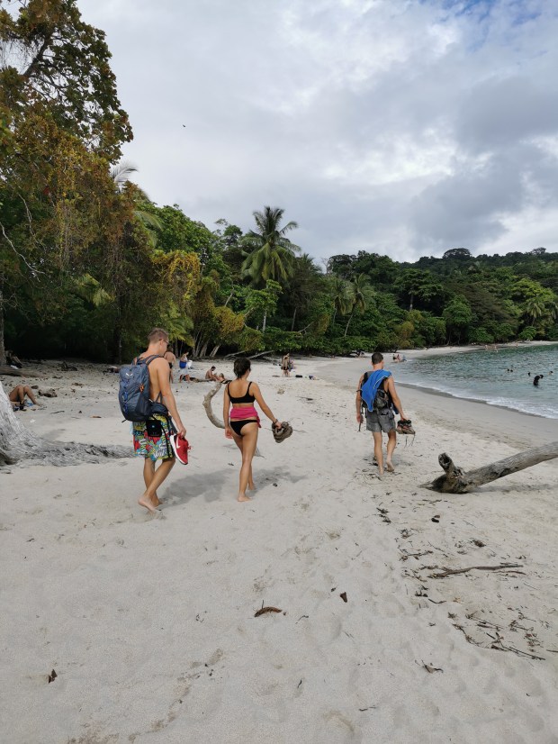 Um 9:00 Uhr am nächsten Morgen kamen wir im Nationalpark Manuel Antonio an. Die Tickets muss man im Vorhinein online buchen und kosteten 17,50 € pro Person. Beim Eingang konnten wir direkt den ersten frechen Affen beobachten, der einer Verkäuferin das Frühstück vom Teller klaute. Weiter ging die Show mit einer Bande Affen, welche einen Mülleimer umwarfen um sich diverse Essensreste heraus zu holen. Kein Wunder, dass es verboten ist Lebensmittel mit in den Park zu nehmen. Im Park bat uns ein netter Guide eine Tour zu einem günstigen Preis an. Mit seinem Fernrohr machte er es uns möglich, dass wir viele Tiere aus nächster Nähe beobachten konnten. Wir sahen Faultiere, eine Krabbe, Affen und sogar eine Schlange. Außerdem erzählte er uns ein paar Fakten über den Park und Costa Rica. Am Ende der geführten Tour wanderten wir zu einem Aussichtspunkt und anschließend zum Strand. Am Strand mussten wir immer ein Auge auf unsere Taschen werfen, denn auch hier waren neugierige Affen unterwegs.