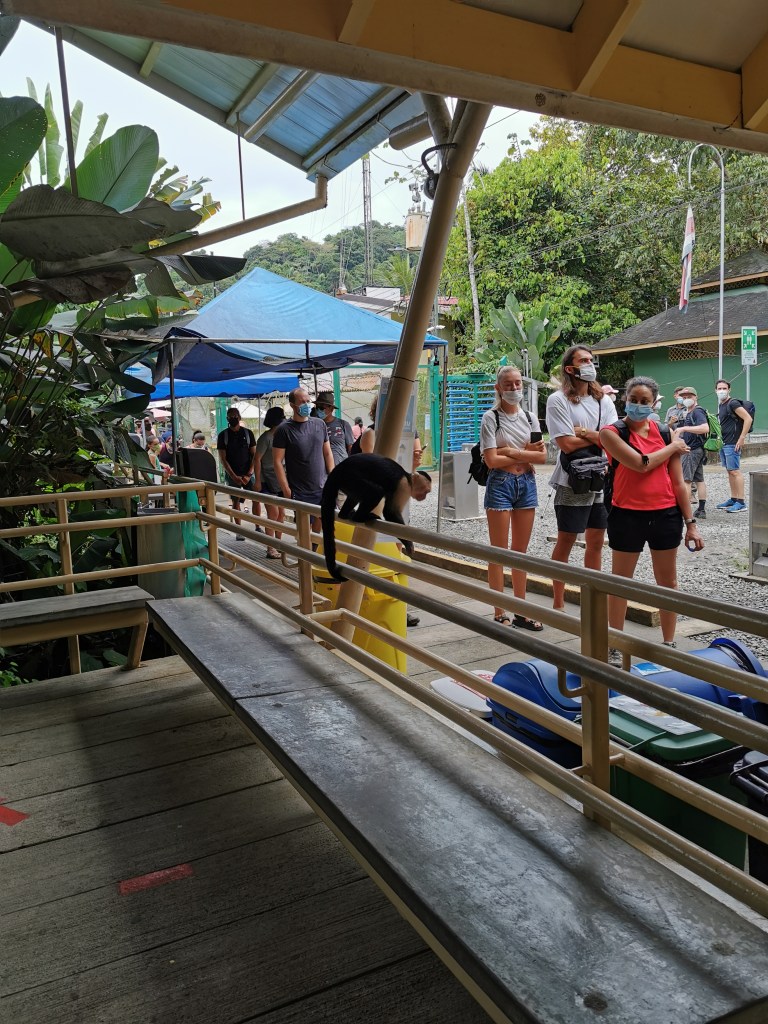 Vom kalten Monteverde aus, ging es endlich weiter ans Meer. Eine erneut sehr kurvenreiche Strecke führte uns über Punta Arena nach Manuel Antonio. Anfangs war der Bus fast leer aber nach einer Stunde Fahrt mussten die Leute schon stehen. In Punta Arena angekommen, schnallten wir uns unsere Taschen auf den Rücken und gingen ein paar Querstraßen weiter, um in den nächsten Bus zu steigen. Von hier aus ging es zu unserem Ziel nach Quepos, ein kleiner Ort in Manuel Antonio. Da die Busse hier keine Klimaanlage haben und unser Reisetag natürlich der heißeste Tag der Woche sein musste, wurde unsere Laune zunehmend schlechter. Nach über acht Stunden konnten wir uns endlich in dem Pool unseres Hotels abkühlen.