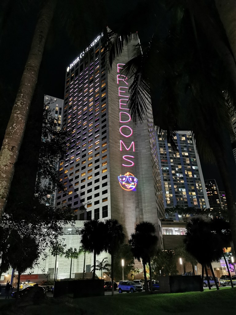 Zu Silvester fand zu unserer Freude im Bayfront Park in Miami eine große Party statt. Natürlich wollten wir uns diese auf keinen Fall entgehen lassen. Da wir davon ausgingen, dass die Getränke im Park ziemlich teuer sein würden, besorgten wir uns vorsorglich etwas Alkohol im Supermarkt. Diesen füllten wir in unsere Trinkflaschen und machten uns auf den Weg ins Vergnügen.