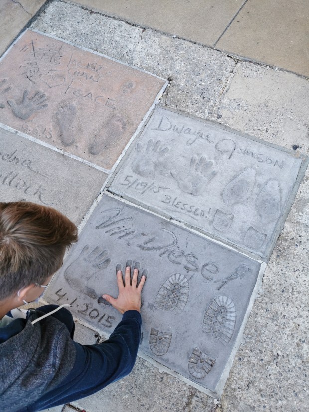 Die Tour durch die Hollywood Hills führte uns an vielen Villen, auch von diversen Stars und bekannten Häusern aus Fernsehserien vorbei. Hier bei den Stars und Sternchen hat man von der Problematik mit den Obdachlosen, natürlich nichts gemerkt. In der ganzen Stadt konnte man den Unterschied zwischen arm und reich deutlich spüren. Der letzte Stop der Bustour war das Dolby Theatre, in dem jedes Jahr die Oscars verliehen werden. Hier verließen wir den Bus und gingen zu den bekannten Hand- und Fußabdrücken der Stars.