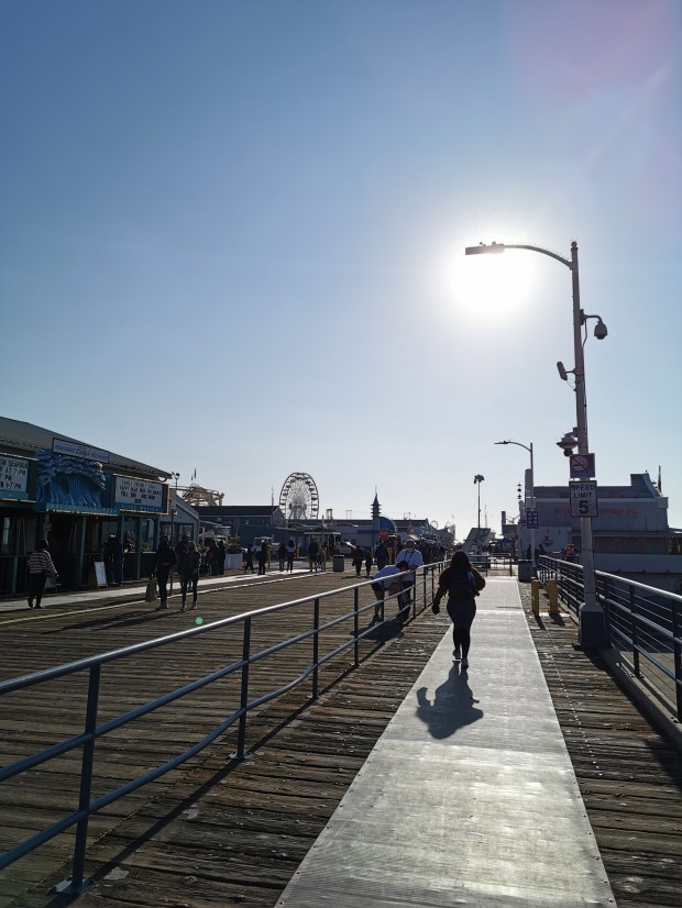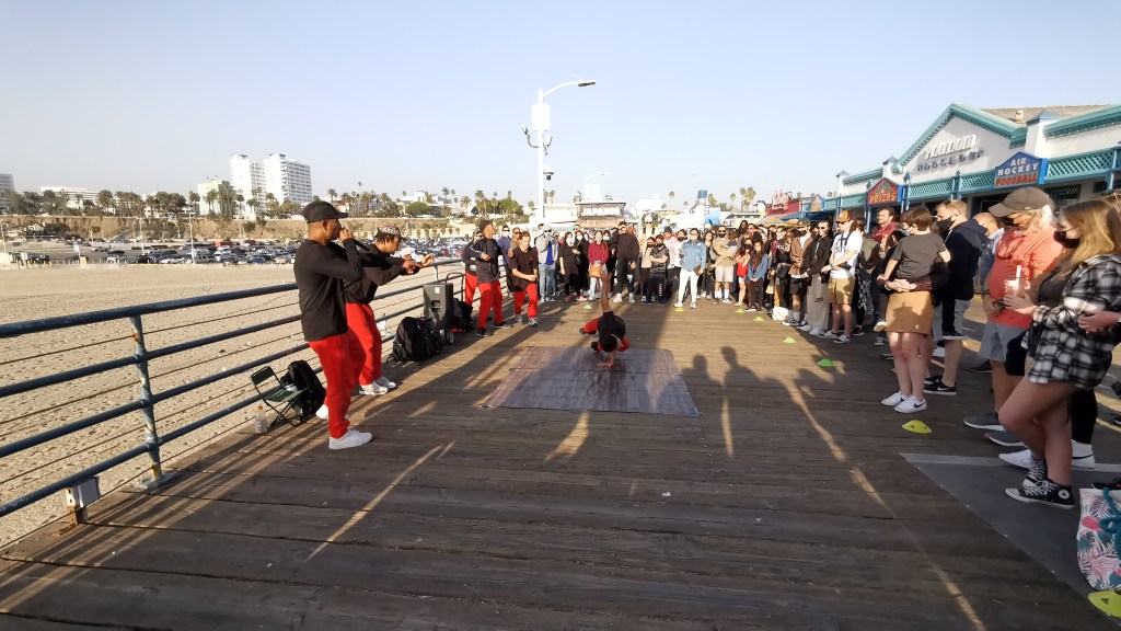 Dieser ist auch bekannt für seinen Freizeitpark und man hat einen einzigartigen Blick auf den Sonnenuntergang. Etwa in der Mitte des Stegs hinaus aufs Meer, konnten wir bei einer kleinen Tanzshow zusehen, bei der Krissi kurzzeitig als Statist herhalten musste. 😆 Zum Abschluss gingen wir an die Spitze des Piers und genossen die Aussicht auf den Ozean.