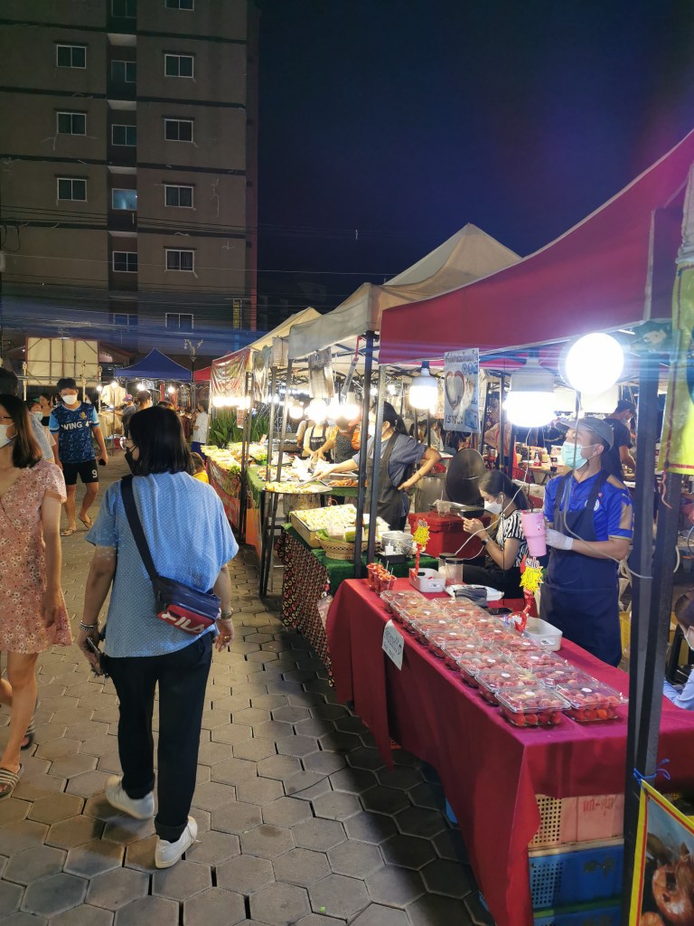 Zur Planung unserer weiteren Reiseziele, blieben wir den Tag darauf im Hotel. Zwischendurch suchten wir die Abkühlung im Hotelpool. Am Abend besuchten wir einen weiteren Nachtmarkt. Hier probierten wir ein für uns neues Gericht Namens „Fried Dumplings“. Dies waren mit Fleisch und Gemüse gefüllte Teigtaschen, die in heißem Öl angebraten werden. Geschmacklich erinnerten sie uns ein wenig an Sauerkraut 😅. Als Nachspeise aßen wir noch frisches Kokosnusseis.