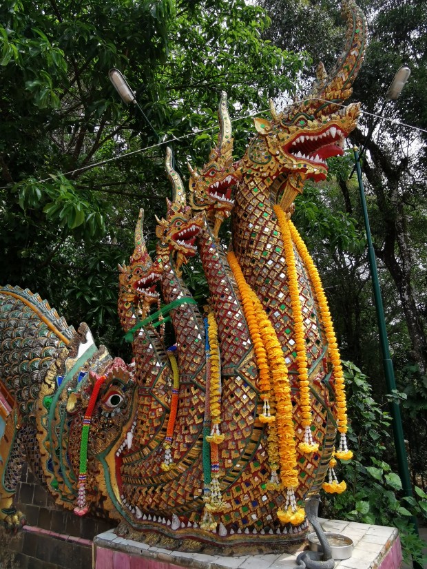 Für den nächsten Tag mieteten wir wieder einen Roller und fuhren zum „Wat Phra That Doi Suthep“ Tempel, auch bekannt unter dem Namen „Tempel mit der Schlangentreppe“. Die kurvenreiche Strecke machte dem Krissi richtig Spaß und kurz wünschte er sich sein Motorrad zurück 😅