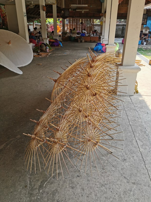 Unterwegs war die Temperatur so hoch, dass sich der Fahrtwind anfühlte, als würde man mit einem Föhn heiße Luft direkt in das Gesicht blasen. Dort angekommen, mussten wir leider feststellen, dass im Dorf fast alles geschlossen hatte. Lediglich die Schirmfabrik hatte geöffnet, und nach einem kurzen Rundgang fuhren wir wieder zurück in das Hotel. Den Abend nutzten wir zum Packen unserer Taschen, denn am nächsten Morgen ging es für uns endlich in die Hauptstadt – nach Bangkok.