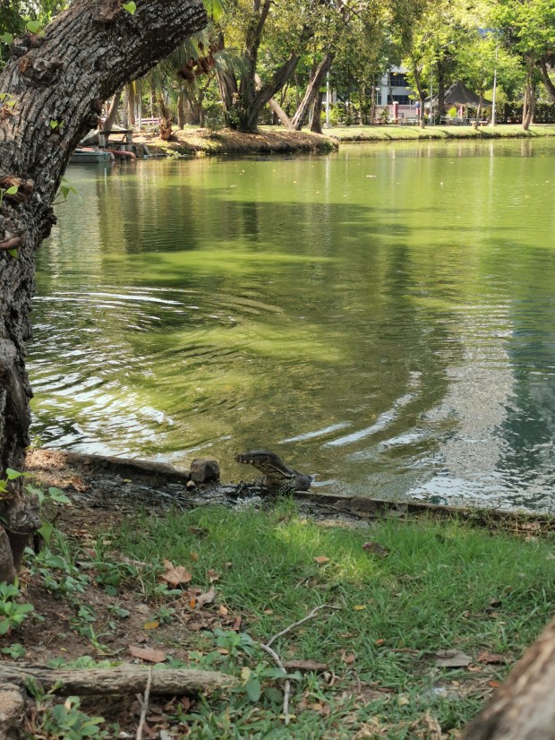 Nach ein paar Tagen im heißen Norden, kamen wir endlich in die Hauptstadt – nach Bangkok. Den ersten Vormittag verbrachten wir im Lumphini Park, einer großen Parkanlage inmitten der Wolkenkratzer. Wir suchten uns ein schattiges Plätzchen, von dem aus wir unter anderem auch Komodowarane beobachten konnten, welche dort frei im Park leben.