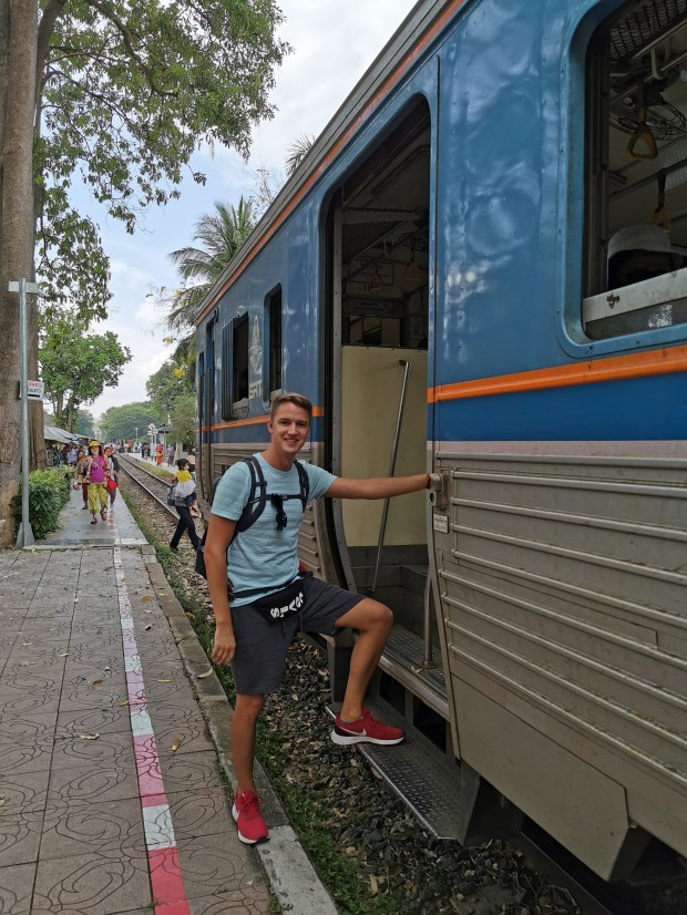 In einem kleinen Restaurant haben wir noch Mittag gegessen bevor es mit dem Zug wieder zurück nach Bangkok ging. Einen Zwischenstopp legten wir noch in „Kanchanaburi“ ein, wo wir durch einen kleinen Markt spazierten. Zurück im Zug waren wir schon sehr müde und mittlerweile ziemlich genervt von der Zugfahrt. Unsere Sitzplätze waren direkt neben dem extrem lauten Motor und wir hielten auf den letzten Metern nach Bangkok gefühlt ständig an. Gegen 20:00 Uhr waren wir dann endlich wieder zurück im Hotel. Ein anstrengender, aber schöner Tag ging zu Ende.