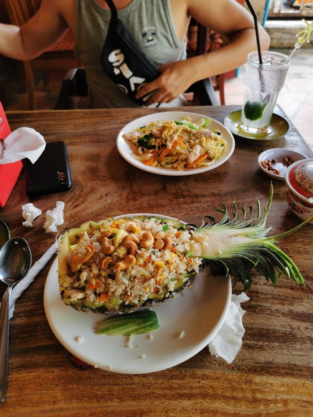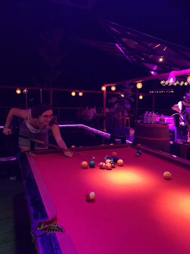 Ansonsten haben wir in Siem Reap viel Zeit in Restaurants verbracht, denn wir hatten noch ein paar Tage zu überbrücken um am 09. April (Connys Geburtstag) auf der schönen Insel Koh Rong zu sein. An einem Abend besuchten wir die „Pub Street“ welche eine Barstraße und bei Backpackern sehr beliebt ist. Wir spielten ein paar Runden Billard und Darts und hatten einen netten Abend. Außerdem spazierten wir viel durch die Stadt und erfreuten uns an den bunt geschmückten Straßen, welche für das kambodschanische Neujahrsfest geschmückt wurden. Nach einer knappen Woche in Siem Reap nahmen wir den Nachtbus nach Sihanoukville von wo aus die Fähre auf die Insel Koh Rong startete.