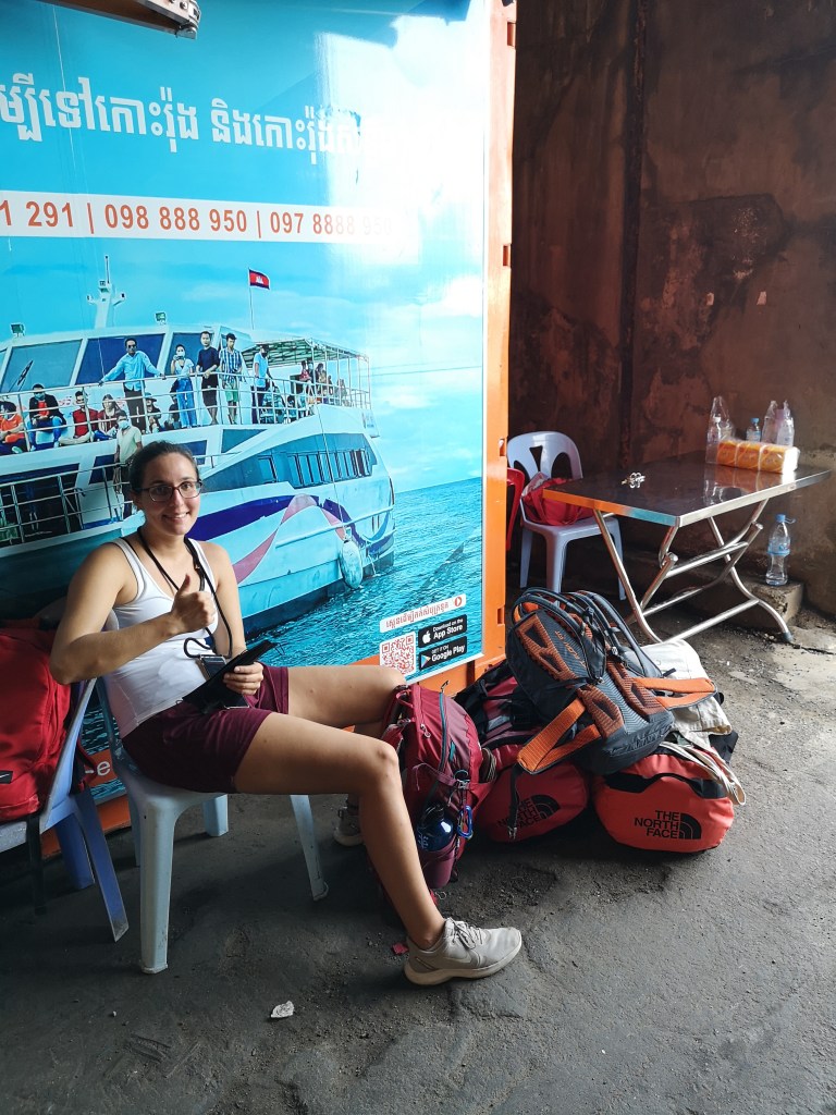 Um ca. 07:00 Uhr morgens kamen wir am Hafen in Sihanoukville an. Hier mussten wir zwei Stunden auf die Fähre nach „Koh Rong“ warten. Um 09:00 Uhr brachte uns dann endlich ein vollgestopftes Boot auf die Insel. Nach einer insgesamt ca. zwölfstündigen Reise, gönnten wir uns erstmal eine Pizza im erstbesten Restaurant das wir fanden, bevor es weiter ins Hotel ging. Satt und mit vollem Bauch stiegen wir auf die Mopeds, mit denen uns zwei Hotelmitarbeiter abholten. Die Fahrt führte über holpriges Gelände und nicht wie erwartet über befestigte Straßen. Mit der großen Tasche am Rücken war es eine ziemliche Herausforderung nicht herunter zu fallen 😅.