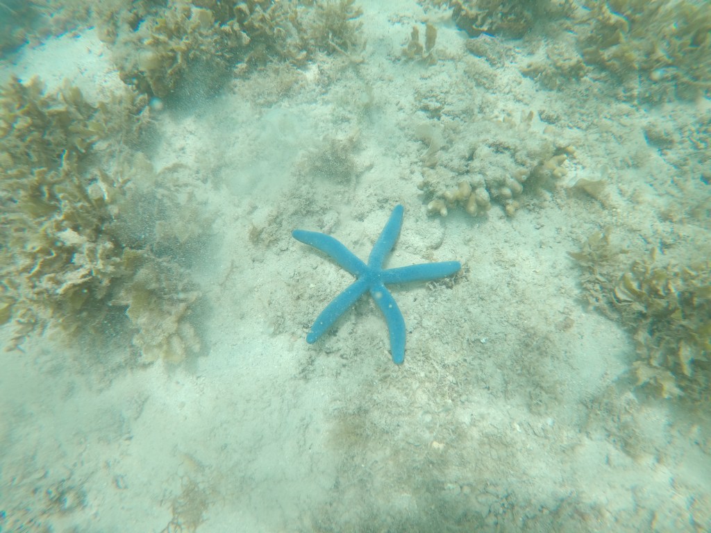 Der letzte Stopp war der „Strand der Seesterne“. Zum ersten Mal konnten wir Seesterne im Meer bewundern. Allerdings sahen sie für uns so aus, als wären sie aus Ton gefertigt und ins Wasser gelegt worden 😅 (aber natürlich waren sie echt).