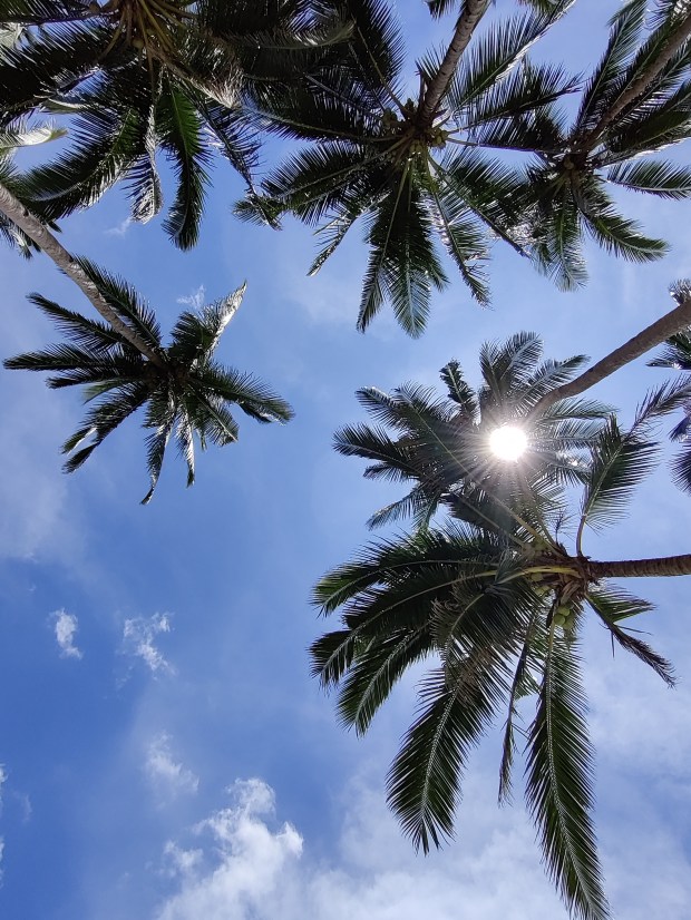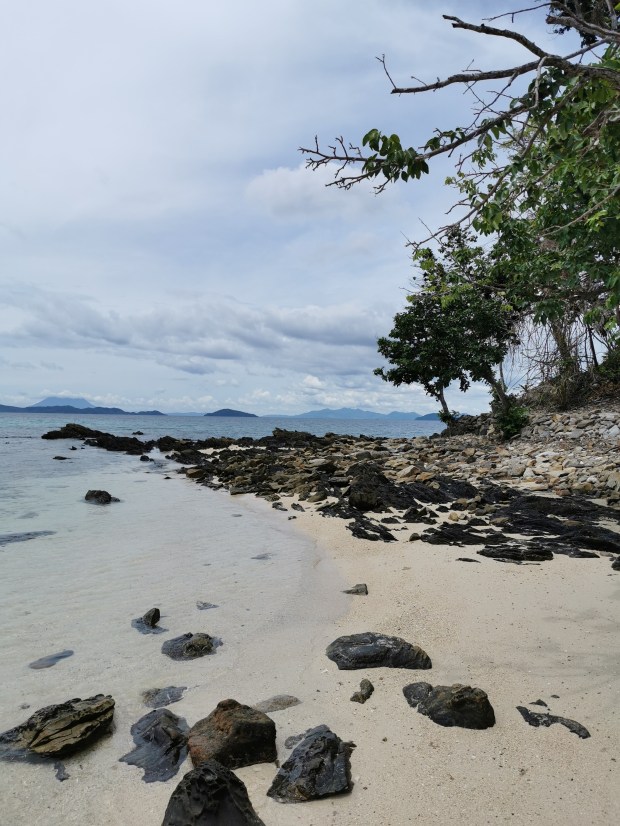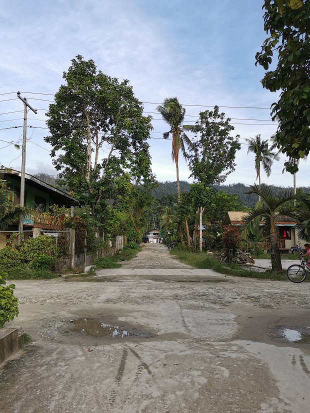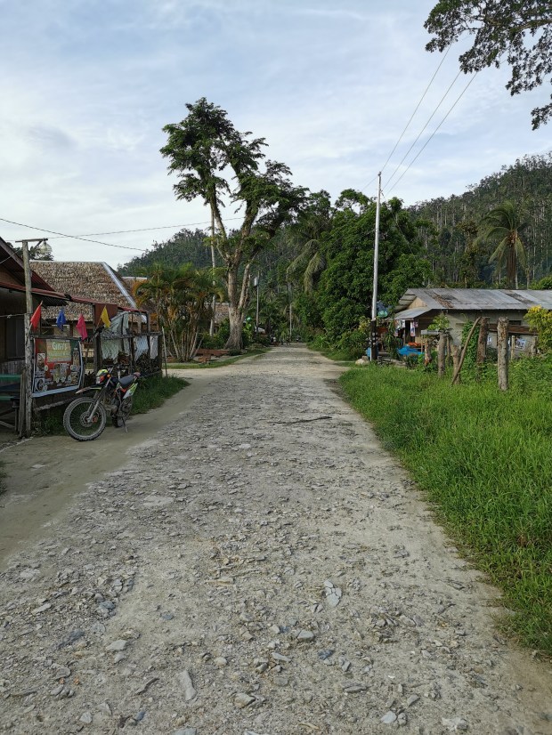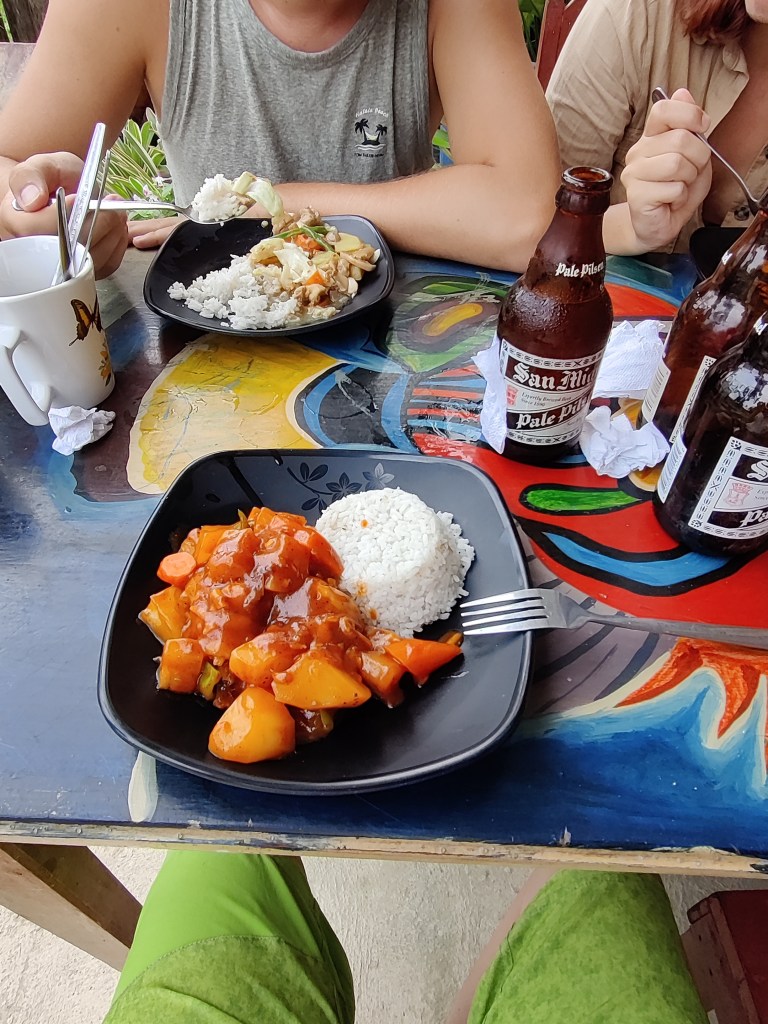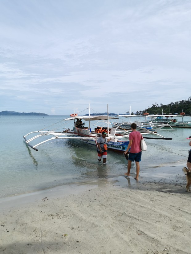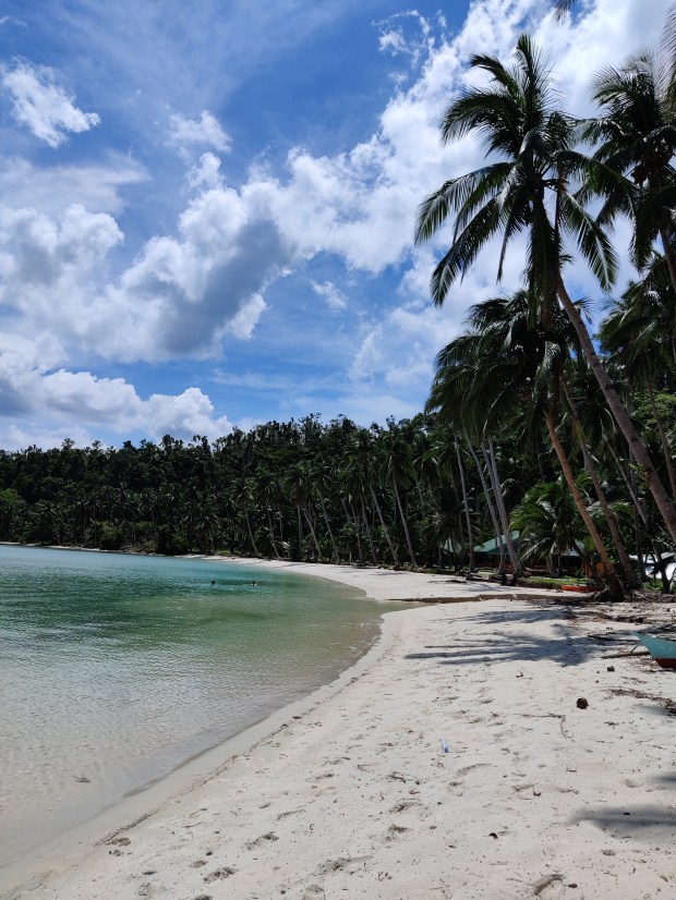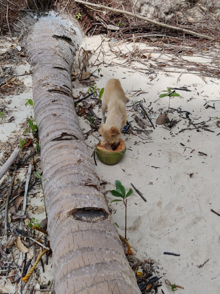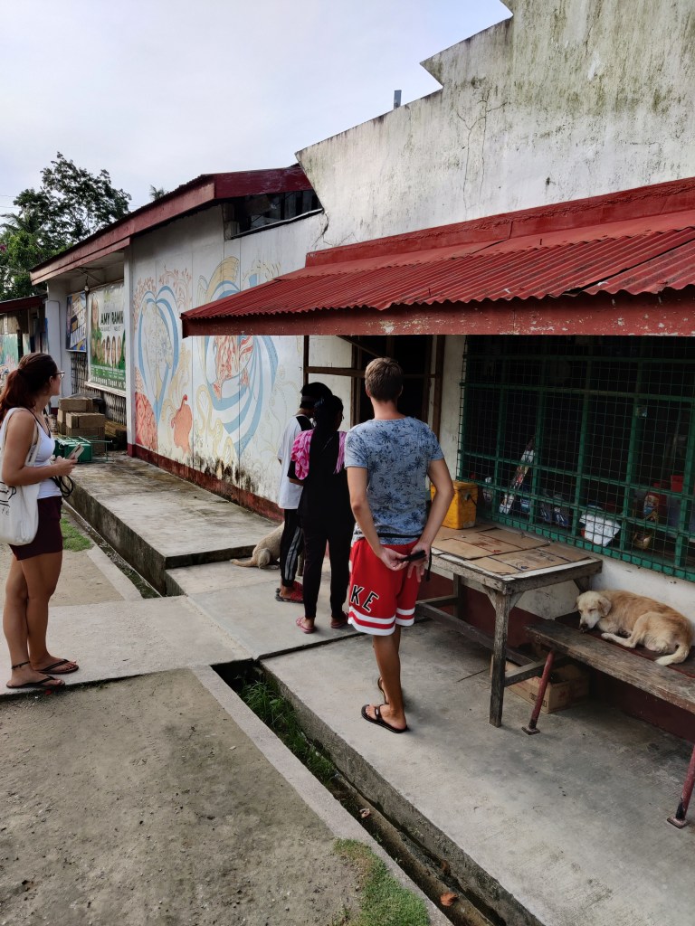 Am nächsten Tag brachte uns „unser Bootsmann“ zu dem nahe gelegenen „White Beach“, welchen man nur mit einem Boot erreichen kann. Der Weg an Land wäre eine sehr anstrengende und gefährliche Wanderung durch den Dschungel. Auch an diesem Strand war keine Menschenseele und wir konnten ihn den ganzen Nachmittag genießen. Neben Karten spielen, Schwimmen und Sonnen öffneten wir auch ein paar Kokosnüsse. Diese kamen einem streunenden Hund zu Gute, denn dieser hat sie genüsslich gefressen 😅. Am Abend spazierten wir noch ein wenig durch den kleinen Ort. Es war für uns schön zu sehen, dass die Menschen hier trotz allem glücklich erschienen. Kinder spielten auf der Straße Basketball, am Sonntag konnten wir sehen, wie viele Menschen in ihrer schöneren Bekleidung in die Kirche gingen, um fröhlich miteinander zu singen und zu tanzen. Jeder hier war sehr nett und freundlich zu uns, selbst wenn wir am Anfang ein wenig schockiert waren von diesem Ort.