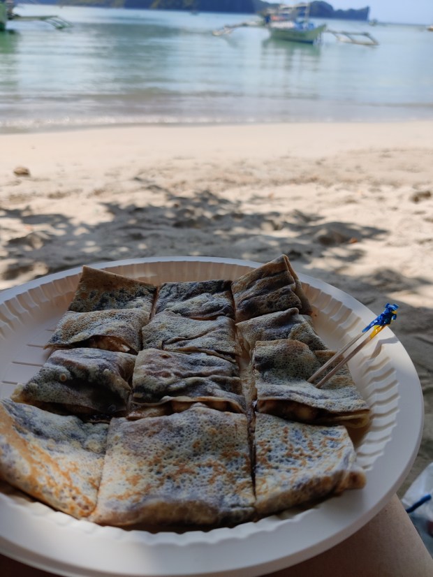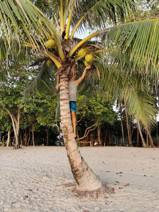 Eines Nachmittags bemerkten wir beim Schlendern durch die Straßen ein Schild mit der Aufschrift „Halo-Halo“. Im Internet erfuhren wir, dass dies ein typisch philippinisches Dessert ist und dies wollten wir uns nicht entgehen lassen. Gut, dass die Jungs nicht so genau wussten was sie zu erwarten hatten, denn sonst hätten wir es vielleicht nicht bestellt. Halo-Halo ist eine Mischung aus verschiedenen Bohnensorten, Kichererbsen, Gelatinewürfel, Kokosmilch und Zucker und je nach Region verschiedener anderer Zutaten, die in einem Glas übereinander geschichtet werden. Naja, ein Highlight war es für uns nicht 😅. Es war interessant es probiert zu haben, aber ein zweites Mal würden wir es uns nicht bestellen.