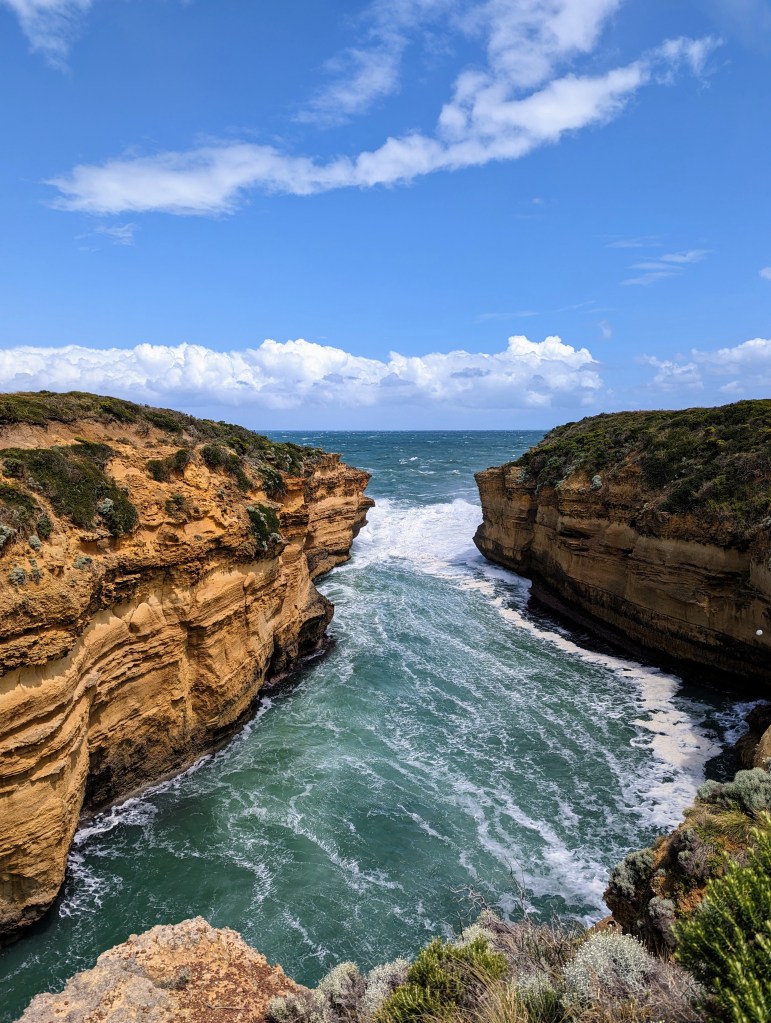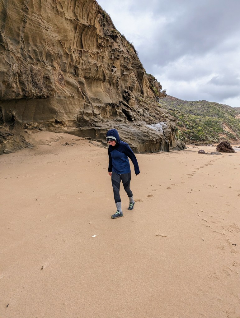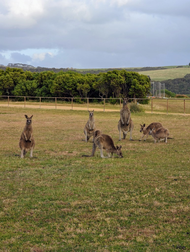 Der Grund weswegen wir hier hergekommen waren, war ein alter Schiffsanker den man hier am Strand besichtigen kann. Da das Wetter so schlecht war und mittlerweile auch schon die Flut einsetzte, machten wir jedoch auf halbem Weg kehrt und gingen unverrichteter Dinge zurück zum Auto. Durch die Flut hätte man den Anker sowieso nicht sehen können. Nass und frierend kamen wir zurück zum Van. Unsere Fahrt ging weiter und wir machten Halt beim „Thunder Cave“. Hier hatten wir Glück, denn ab und zu blinzelte sogar ein wenig die Sonne durch die Wolken. Lediglich der Wind war geblieben. Außerdem machten wir noch Halt bei dem „Loch Ard Gorge“ und einem weiteren Aussichtspunkt. Den Rest des Tages verbrachten wir auf einem weiteren Campingplatz. Dieser sollte für den Besuch von Kängurus bekannt sein. Und tatsächlich kamen zur Dämmerung die Kängurus aus den Büschen gehoppelt und nach kürzester Zeit waren wir komplett umzingelt von den schönen Tieren 😅.
