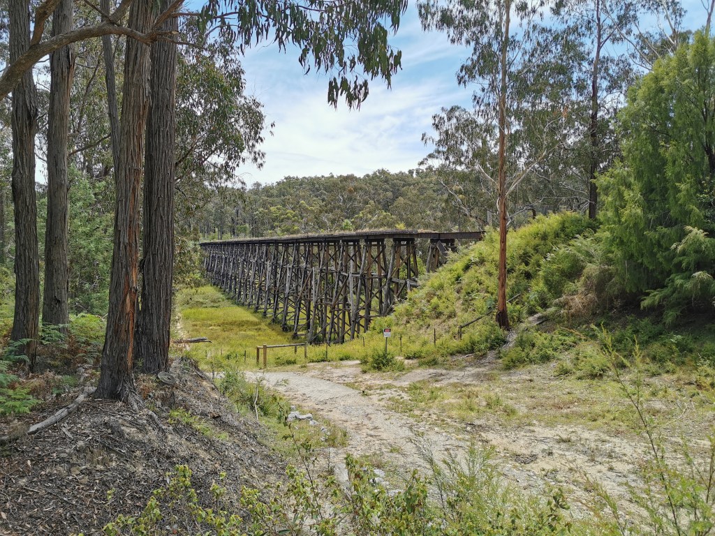 Danach ging es nach Lakes Entrance, ein Fischereihafen und kleiner Urlaubsort im östlichen Gippsland. Hier haben wir eine tolle Minigolfbahn gefunden und auch eine Runde gespielt. Auf dem weiteren Weg machten wir noch Halt bei der „Stony Creek Trestle Bridge“, einer alten Eisenbahnbrücke mitten im Wald.